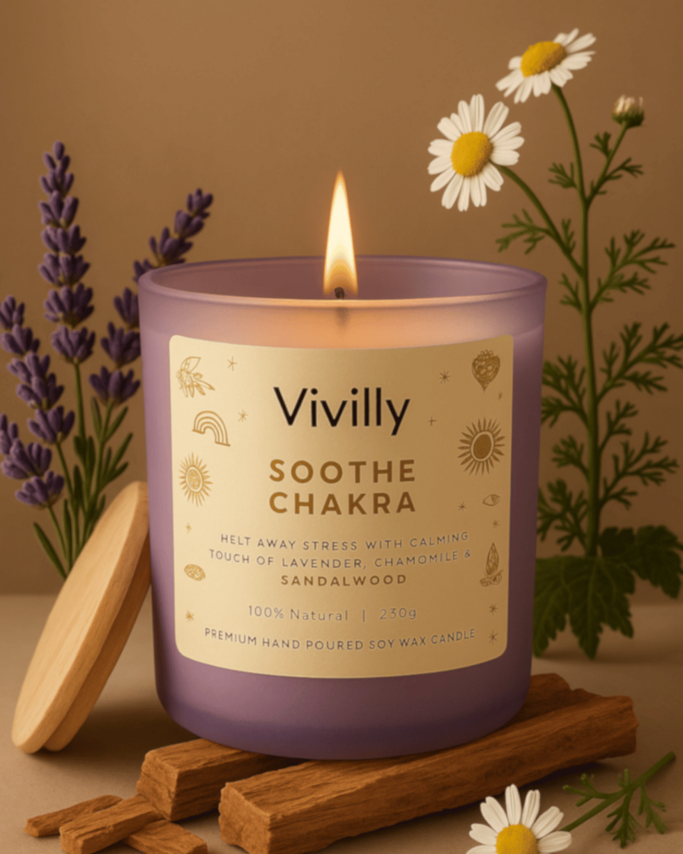 Unwind and let go with Vivilly’s Soothe Chakra Candle, a serene blend of Lavender, Sandalwood, and Chamomile. Hand-poured with 100% soy wax, it creates a calming sanctuary for your mind, body, and spirit.